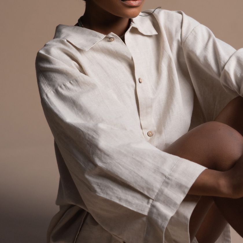 Flared Cotton Button Down Shirt